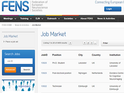 Both the FENS (Federation of European Neuroscience Societies) and the SfN (Society for Neuroscience) have a long list of employment offers on their websites. We encourage SENC members to use the applications provided on the websites to offer or seek jobs of different types and conditions.