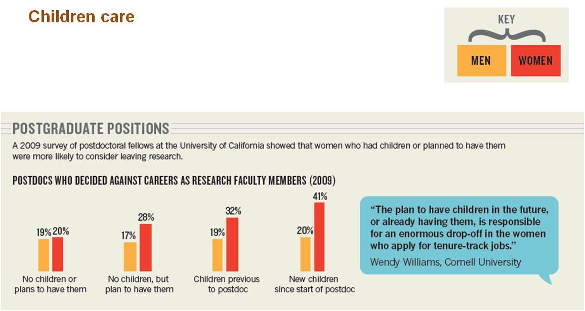 Existe una tendencia a pensar que ya se está cerrando la brecha entre el número de hombres y de mujeres en ciencia; sin embargo, las estadísticas nos arrojan datos que permiten concluir lo contrario. Podría incluso suceder que, en la actualidad, la discriminación de las mujeres científicas fuera más sutil y difícil de percibir. Por una parte, el número de mujeres graduadas en las diferentes carreras universitarias no ha parado de crecer y, en algunos grados, supera con creces al número de hombres. Sin embargo, estos datos no se han revertido en los últimos 30 años cuando se mira en las categorías de mayor responsabilidad y prestigio de la carrera científica.